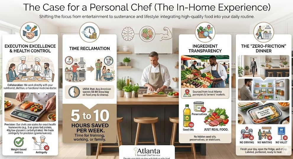 At Atlanta Personal Chef Service, we are not trying to replace your favorite Friday night spot. We are trying to upgrade your Monday through Thursday. We are here to ensure that when you are at home, you are eating food that is as thoughtful, delicious, and high-quality as anything you can find in the city—customized entirely to you.